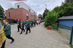 Um 14 Uhr am Kirmes Samstag trafen sich seine Majestät Johannes I. Hamacher mit seiner Königin Sabine, sowie die Ministerpaare Norbert Baumeister mit Tanja und Marco Lietz mit Andrea, die Schützen und interessierte Bürger*innen auf dem Kirchenvorplatz.